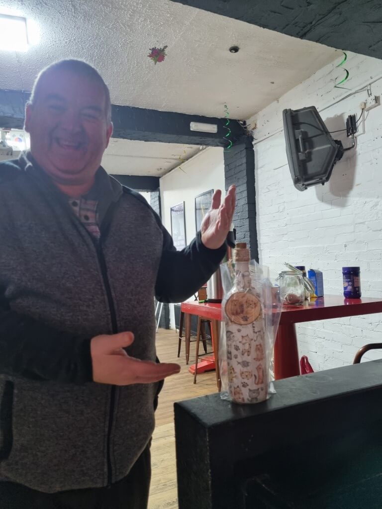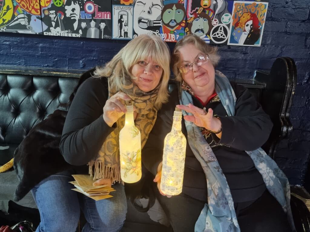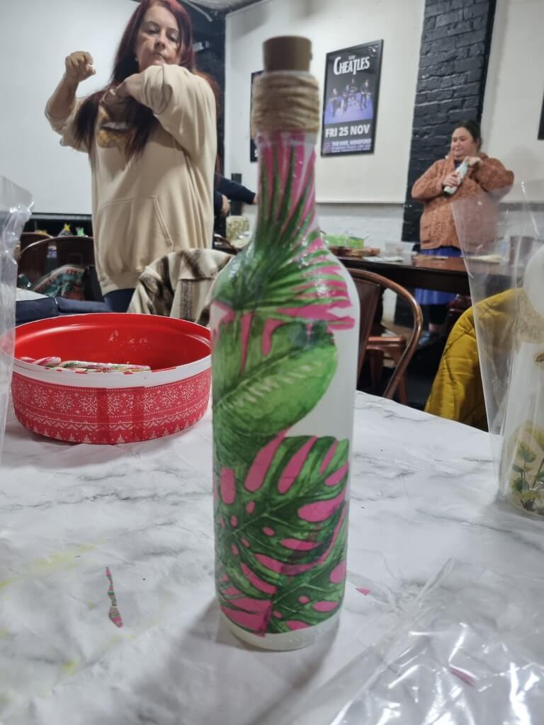 At our Thrive group meetings we have lots of fun. Her are a few photographs of members enjoying painting flower pots and bird houses. Painting with cotton buds. Making stress balls and mindfulness shakers. Decoupaging bottles.